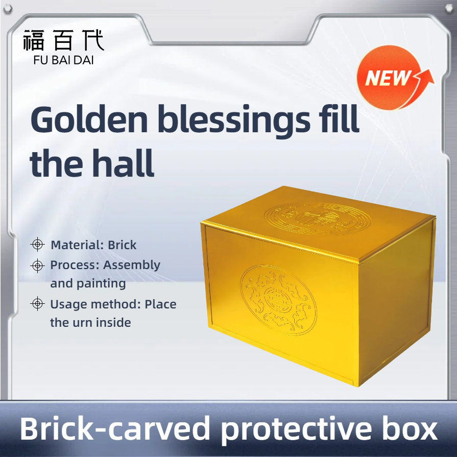 La « boîte de protection pour sculpture en brique Golden Fortune Full Hall », basée sur des matériaux en brique et imprégnée du charme élégant de l'or, est un choix idéal pour transporter des urnes qui combinent texture visuelle et rangement soigné.
